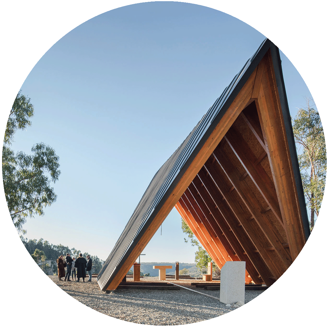 This chapel projected by Plano Humano Arquitectos was born as a result of the need to have a chapel in the National Scout Activities Camp (CNAE), in Idanha a Nova, central region of Portugal. It is located in a rural setting, with magnificent views of the plateau, this prompted the design of the building, the project aims to be an open space for the public at all times.