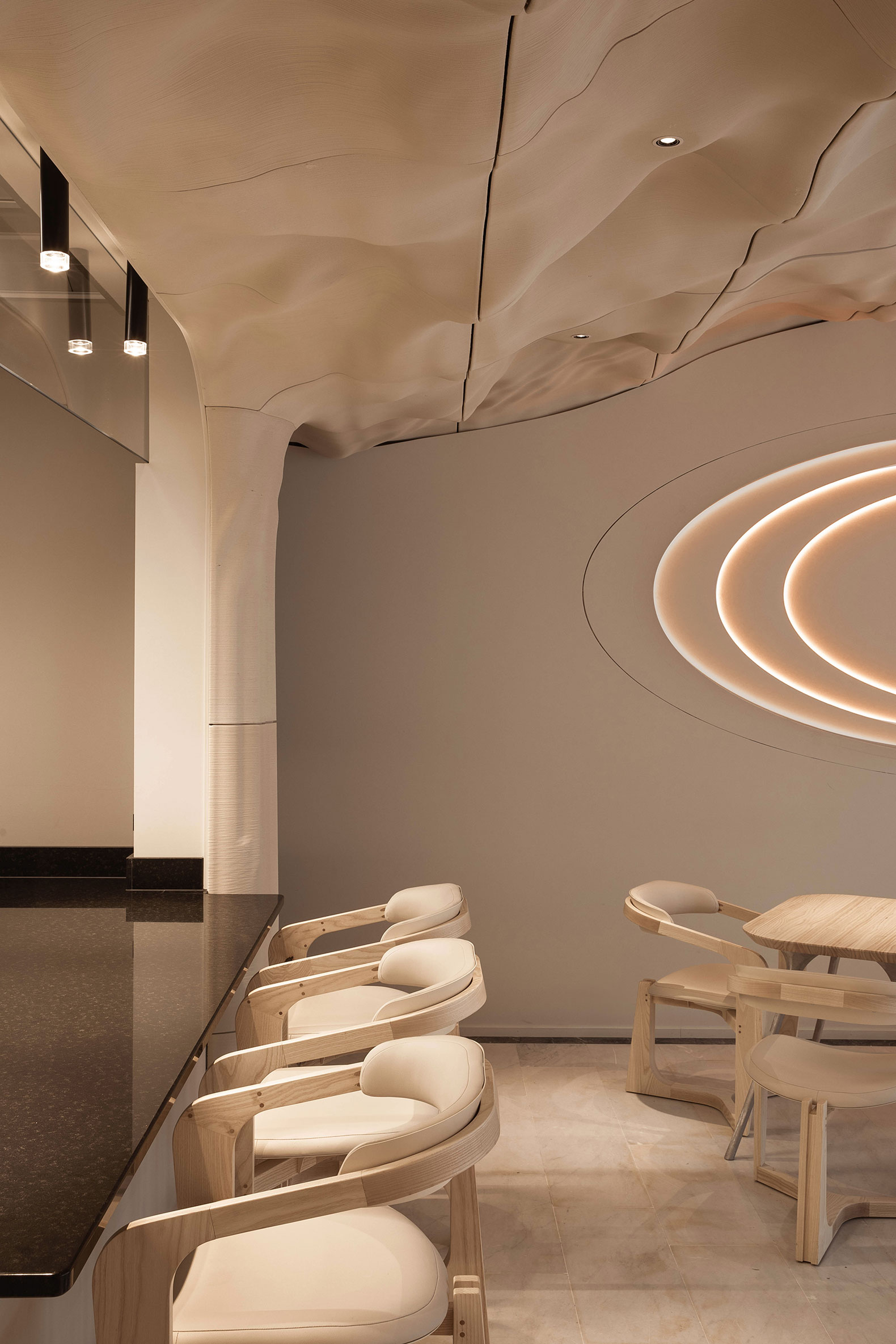 This project, through a pioneering approach, redefines the limits of creativity and opens new possibilities in the fields of architecture while relying on the experience of the machines for the execution of the project, resulting in a welcoming dining space that with a delicate atmosphere that allows the architectural elements to enhance the quality of the chef's creations, without competing with them.
