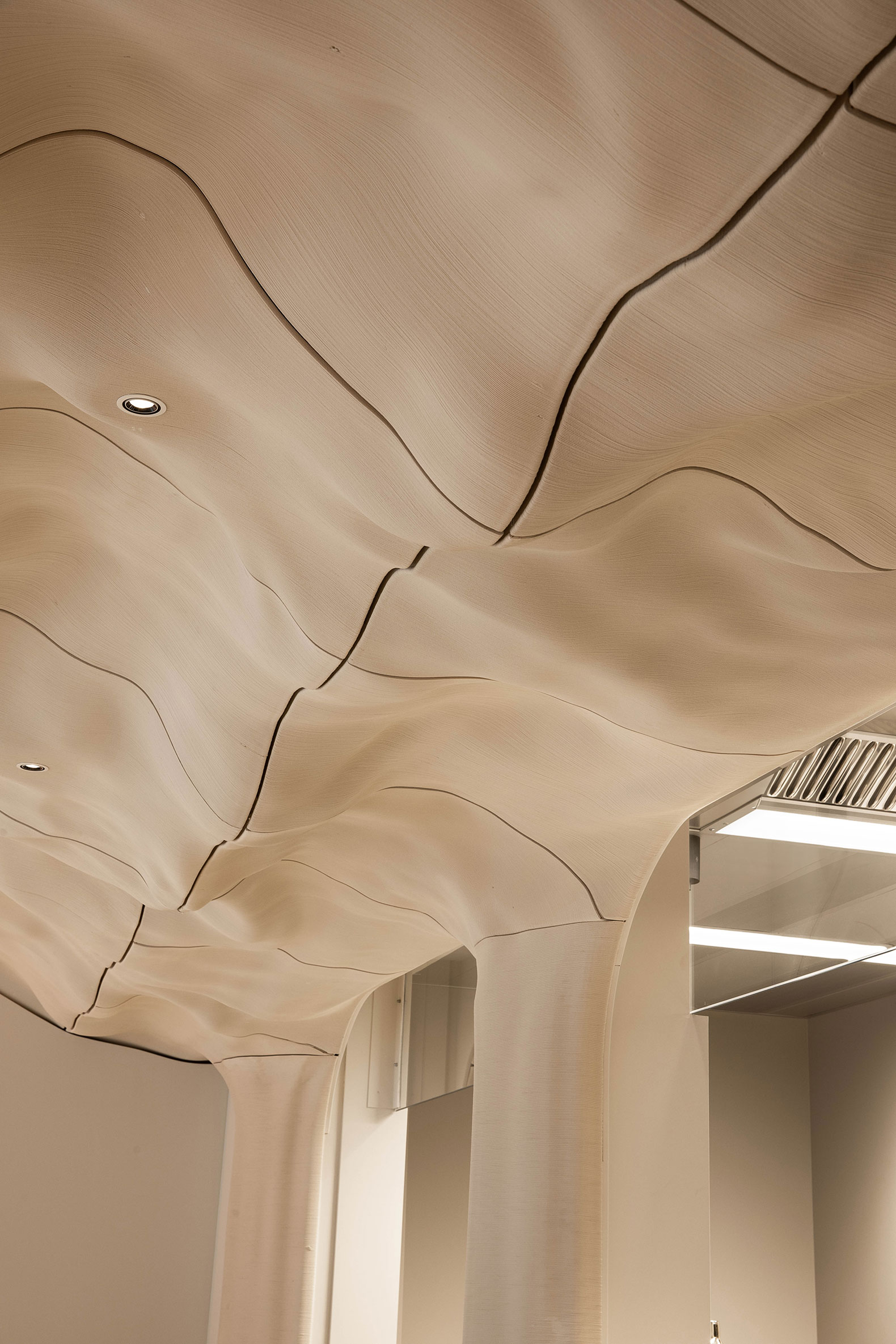 White and organic shapes, each of the elements was mounted together to form the distinctive ceiling of the dining area. In this project, External Reference, as in its long journey of exploring 3D printing applied to design and architecture, has relied on the expertise of La Máquina for project execution.