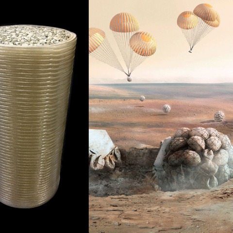 As part of this stage of the competition, teams were asked to use recycled mission materials and indigenous Martian regolith (soil) together to 3D-print a truncated cone and a cylinder, which were then subjected to compression testing to assess their suitability as structural components. Foster + Partners has been looking at the engineering geometry of the structures, while Branch Technology have brought their expertise with 3D-printing materials and methods to the project.
