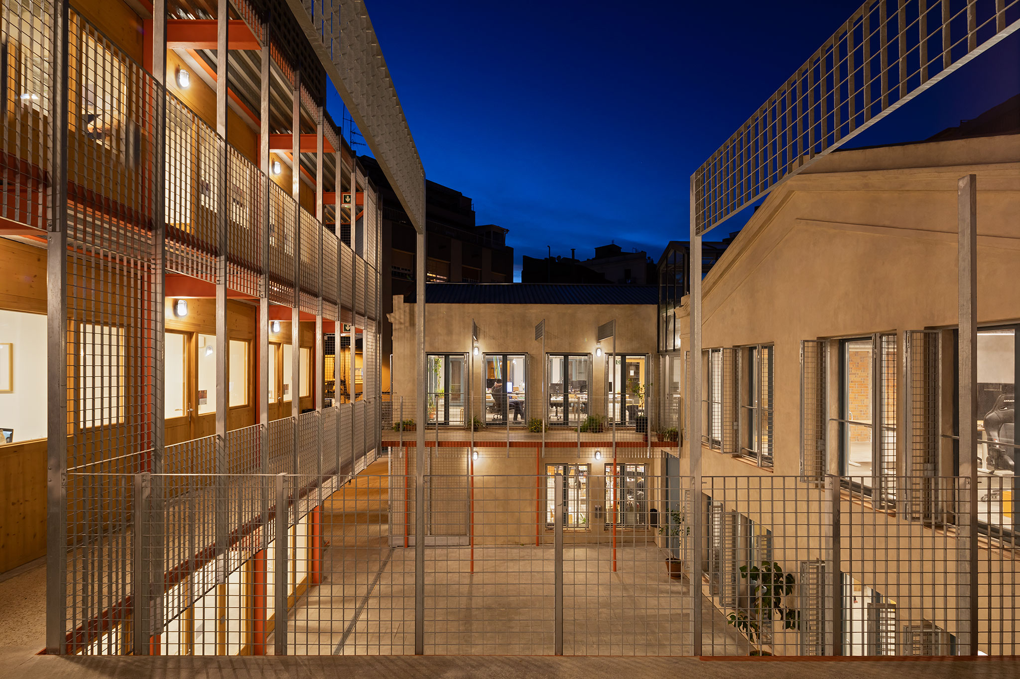 La Comunal occupies half of a block in the Sants district of Barcelona. It is a protected industrial building, built in 1926 for the manufacture of naval sails. It is currently the workspace of eight organizations, including Lacol.