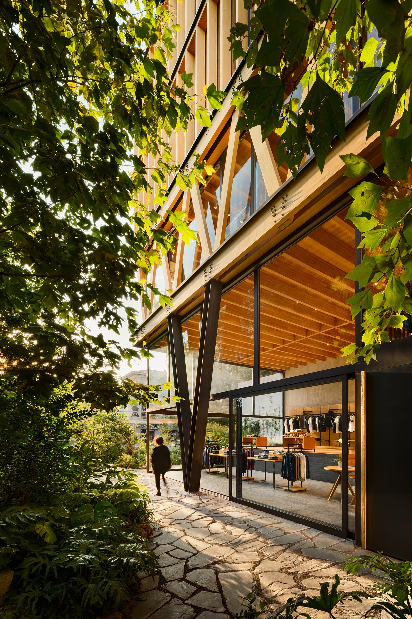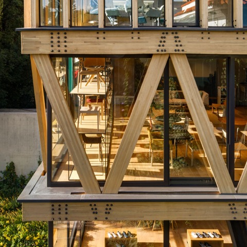 As a result of our continuous research to find alternative materials and construction systems with low impact, the use of wood as the main element for the construction of El Jardín Anatole, the first building with a wooden structure in Mexico, arose. In this way, the architectural expression is based on the structural system to create a wooden box supported by a single steel “V” column that floats over a public square, full of endemic vegetation.