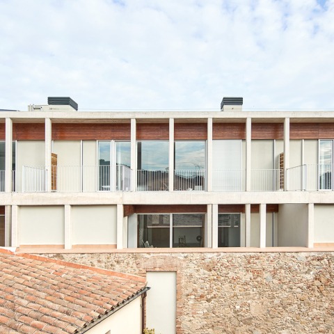 The building houses on its north face the proportion of gaps, colors and composition of the old town of Cabrera de Mar, without renouncing a more contemporary language that is expressed with greater intensity on its south face, open to the sun and views. Here the concrete structure creates a latticework that acts as a large filter, forming loggias and pergolas that protect the interior of the houses.
