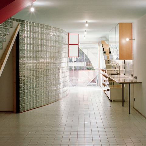 The material palette dissolves the traditional boundaries of a house. Vast surfaces of glass brick, tiles and light blue are occasionally interrupted by dots of marble, lines of wood and blatant red elements. One could refer to Ito's sense of erotic transparency and Hasegawa's experiments with overlays and layers.