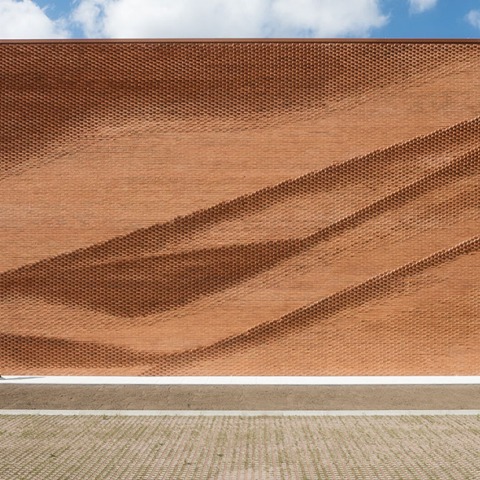 The inspiration for the brick facade is the alabaster fold of the Beethoven statue by Max Klinger, which is in the Leipzig Picture Museum. Max Klinger created a paradoxical perception here. The viewer sees a seemingly fluent light scarf over the knees of Beethoven and recognizes at the same time that it consists of solid stone.