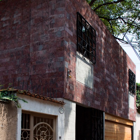 Situado en Coyoacán, dentro del barrio de Santa Catarina, el proyecto se plantea como una casa introvertida e íntima. La fachada se trabajó con el material local de la zona, el recinto rojo y se mantiene principalmente cerrada al exterior. Hacia el interior los volúmenes y por lo tanto el programa, se organiza alrededor de dos impresionantes fresnos y la intención es que cada espacio tenga una relación distinta con cada árbol.