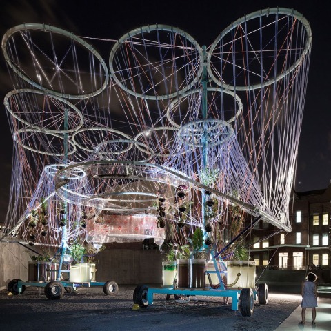 Más de 2 billones de litro de agua circula cada día por debajo de la ciudad de Nueva York. COSMO es un artefacto móvil, hecho de componentes de riego a medida, para hacer visible y agradable el urbanismo hasta ahora oculto de tuberías en el que vivimos. Como un conjunto de ecosistemas basado en el diseño ambiental avanzado, COSMO está diseñado para filtrar y purificar 3000 litros de agua para eliminar así las partículas en suspensión y los nitratos, equilibrar el PH y aumentar el nivel de oxígeno disuelto.
