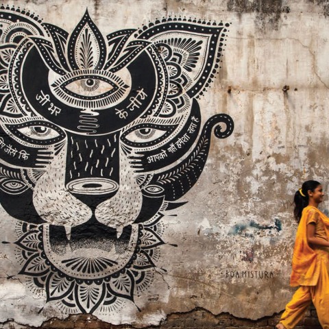 En este caso el trabajo de BOA MISTURA en India, en las calles de Nueva Delhi, viene inspirado por las referencias locales a personajes como Mahatma Gandhi, a dioses como Ganesh y a toda la filosofía característica de la cultura hindú.
