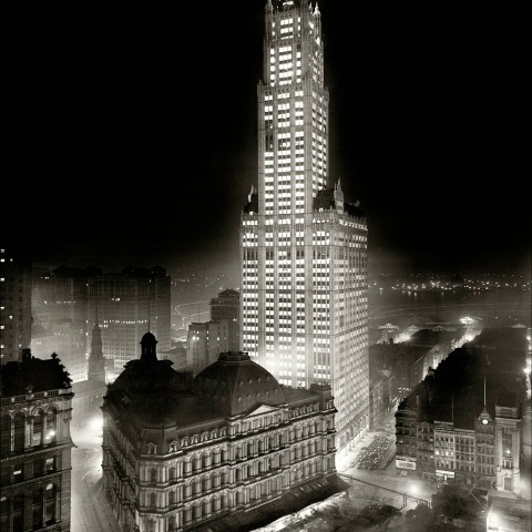 En la noche del 24 de abril de 1913, el Edificio Woolworth iluminaba la noche de Nueva York encendiendo las 80.000 bombillas incandescentes de toda la torre, encendidas cuando el presidente Woodrow Wilson accionó un interruptor ceremonial en Washington, DC. El luminoso espectáculo fue una propuesta del rey del baratillo (apodo con el que erá conocido) Frank W. Woolworth, que pagó el rascacielos con su fortuna personal y asumio personalmente (para bien y para mal) todas las decisiones de su diseño.