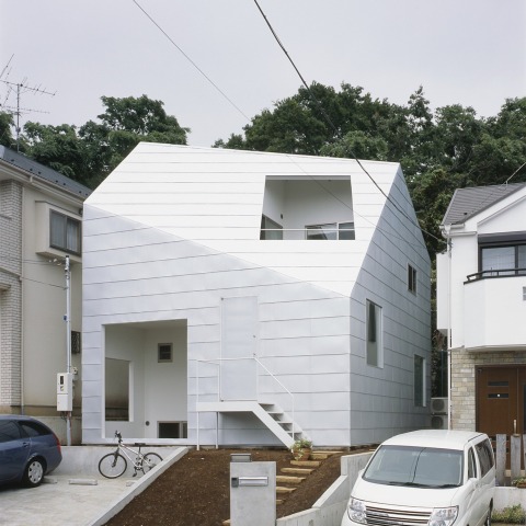 Neighbouring houses are built up against the lot on both sides but a lush forest spreads to the back while a view down to Yokohama city can be enjoyed to the front. Although the area is quite developed one can still listen to the birds and enjoy the fresh air making this an attractive place to live. The rooms are organized vertically and by mixing exterior spaces into the house, the surrounding can be felt at all times.