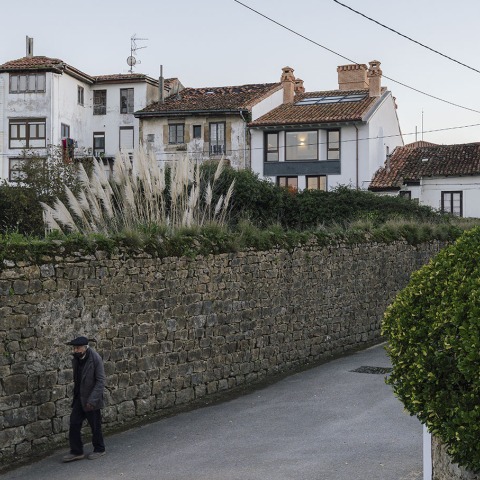 Given the characteristically deep plan typical of these originally rural lots, the new distribution takes advantage of this elongation by organizing autonomous episodes along the house’s section, fitted for a required intense use by a large family. This is materialized in a programmatic piling-up with the bedroom floor located between the spaces of kitchen-dining room in the ground floor and the social area on top. The ascending sequence culminates in a double-height living room on the top floor, suitable for social gatherings, and where much-sought views towards mountains (Picos de Europa) and sea (Mar Cantábrico) are reached. The sea’s focus is made explicit in the new north façade, which lightens up in an upward sequence topped by a lookout, in a contemporary version of the restored south façade. The inversion of the conventional hierarchy between programmes, with the placement of the social areas on top, makes up for the houses tight urban constrains but also stages an organizational diagram which prompts a playful use of these spaces.