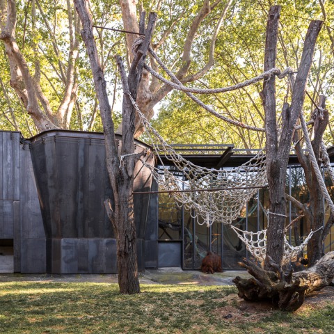 The complex social life of orangutans entails a new system with different spaces that allow flexible us. With a total of 2,300m2, it consists of a tour for the public and 4 environments for the orangutans: both are heated spaces that allow the shelter when the weather is adverse, and two open spaces and gardens where animals can enjoy the sun and a more natural environment.