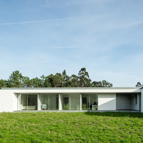This horizontal line of the house goes along with the horizontality of the hills, in a relationship of continuity. At the same time, the sight of this clear white line stands out against the sinuous profile of the hilly green background.
