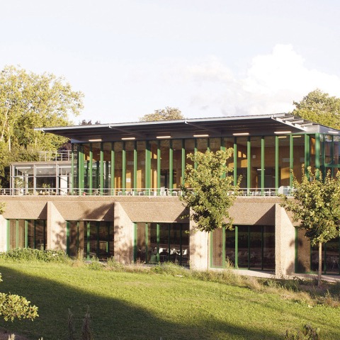 First step was highlight the intrinsic qualities of the original building. Of the refectory's pre-existing 2000 sqm building, the architects recovered the main elements from an architectural point of view. Not only the prefabricated concrete structure, but also the flexible construction system, offering a wealth of features such as paths, stairways and openings. In addition, the restaurant's offer was completed with a new expansion called the "kiosk".