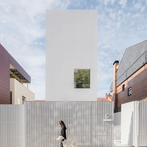 The house is built in a long and narrow plot in a quiet residential area in Madrid, unused for years due to its unusual proportions. It accommodates the floor plan requirements inside a volume only 4 meters wide, resulting in a thin and compact prism.