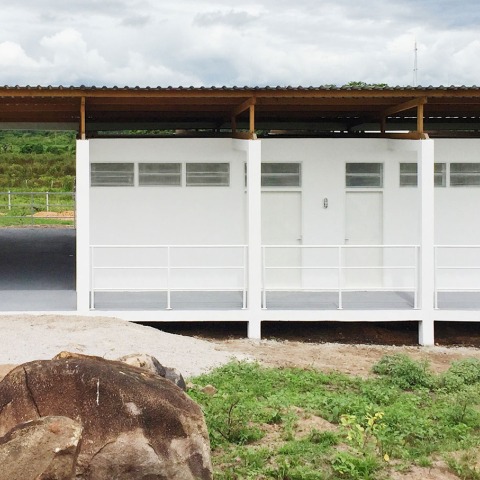 The project is located in the Canaã dos Carajás in the Pará Estate of Brazil. It consists of a workspace to process honey collected by a co-operative of beekeepers formed by 53 local rural producers. The site has a difference in height of seven meters, which would have required considerable and costly ground-works to achieve a graded surface. Hence the decision to suspend the concrete slab on pilotis which worked well within the budget, though it also represented an opportunity to naturally ventilate the building.