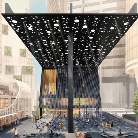 "We have envisioned a highly interactive environment that connects holistically to its neighboring buildings and the public realm. Our proposal, in addition to the new community building, includes the George Street public plaza, Circular Quay Tower pedestrian bridge as well as the integration of the proposed cycle parking facility. Incorporating these public interventions with our design proposal ensures a building which is tied to its location and community. We believe the new community building and George Street public plaza can become a newly cherished destination in Sydney’s CBD, a generative place for people to connect, recharge, reflect and take a pause from the rhythm of a fast transforming city."