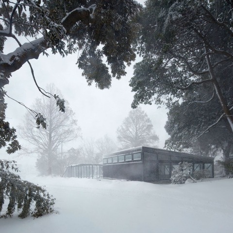 The roof of the event space must be capable of supporting snowfall of up to 1m in height across an area of 12㎡. Careful consideration has been given to the placement of the cross-braced frames such that they provide sufficient structural integrity whilst retaining a sense of openness which was an essential characteristic in the brief.