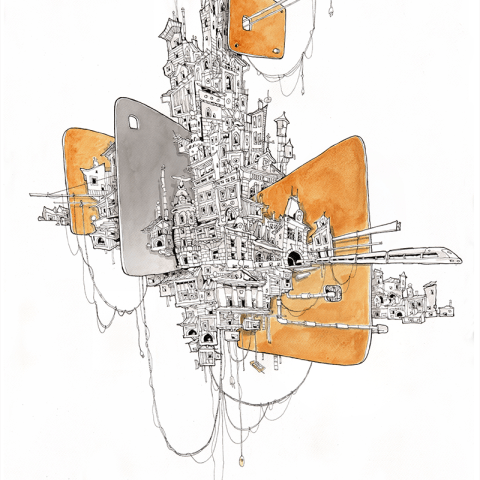 André Rocha is a Portuguese artist with a great passion for drawing real or imagined cities. His work reflects both his career as an architect as his fascination for the surreal, his portfolio is basically a great collection of cityscapes and imaginary urban environments drawn with all the detail that the format allows him. The works of Andre Rocha create tensions between ultra-compact and large empty spaces. The balance between these two characteristics have been the basis of his most recent work.