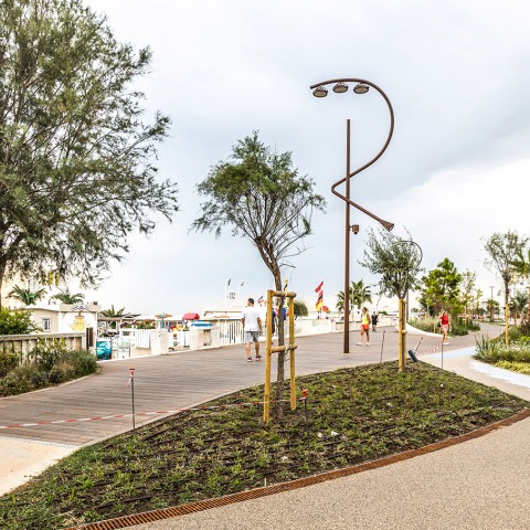 In addition to being one of the main elements for joining all the promenade sections, the dunes also respond to the need to reduce the differences in height between the sandy shore and the promenade, thus managing, almost imperceptibly, to eliminate the impact of a vertical barrier that would eliminate the continuity between the city, the promenade areas, the beach and the sea.