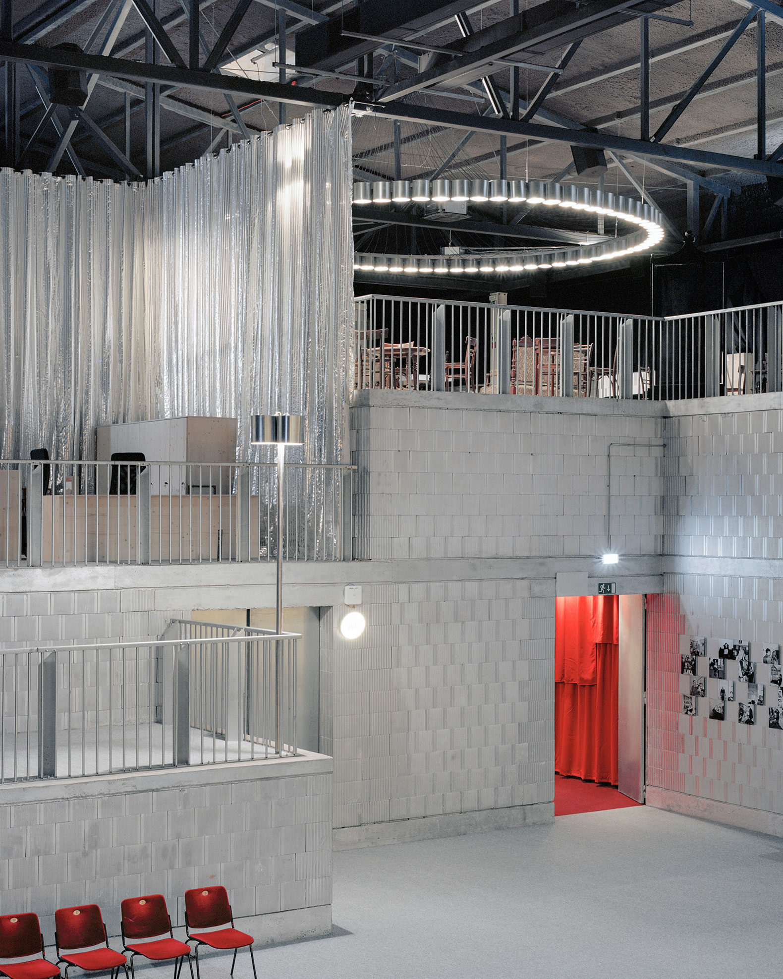 The temporary spaces of the Slovenian National Theatre Drama Ljubljana are located in a complex of former industrial halls from the 1960s, in the Litostroj area of Ljubljana, Slovenia. An important public cultural program activates the gray zone of the city and thus, as in similar situations in other European capitals, “expands” the city center. By establishing a new programmatical center on the fringe of the city, the project is also socially inclusive. A series of low-budget interventions, in a short period triggered the transformation of an abandoned industrial into a new public building