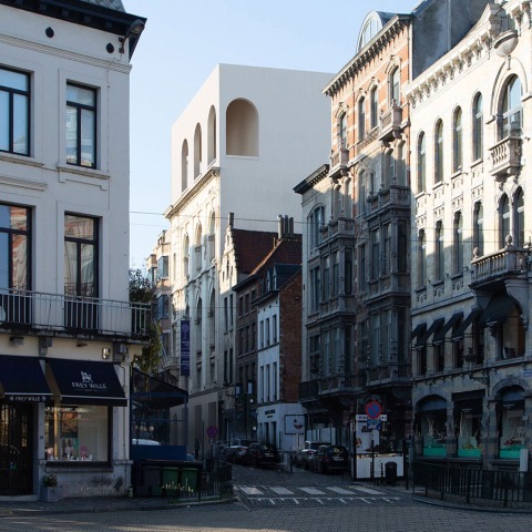 Last floor hosts a multipurpose space for 250 people, which opens to an exterior loggia that filters the relationship with the city of Brussels. The project maintains the existing façade of the building, which gets crowned with the new belvedere and offers magnificent views of the Palace of Justice and the Marolles.