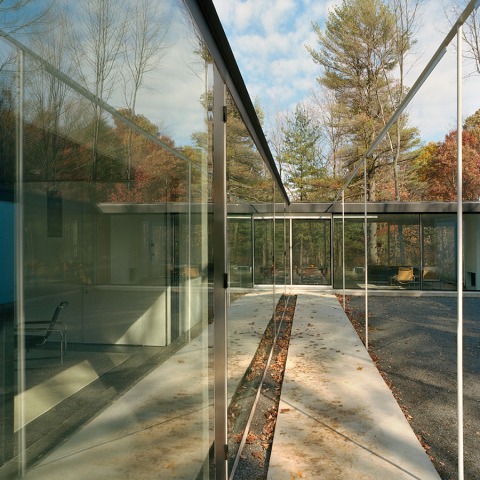 The Gefter-Press is sited on a twelve-acre property accessed by crossing a quarter mile expanse of farming fields before passing into a forested site. The slow approach to the house is the initial phase of movement that instigates the organization of movement and time in the building.