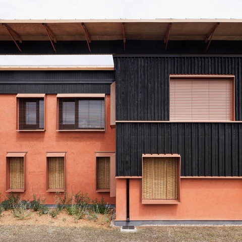 Built with French materials of biological and local origin, the project prioritizes the circular economy: the entire structure and finishes are made of wood, while the wooden doors and radiators were salvaged from the old police station located on the same site. The combination of passive strategies ensures comfort in summer, while heating is generated by a biomass boiler and a central photovoltaic solar system. In line with sustainability criteria, the project embraces its ecological commitment and addresses crucial environmental challenges.