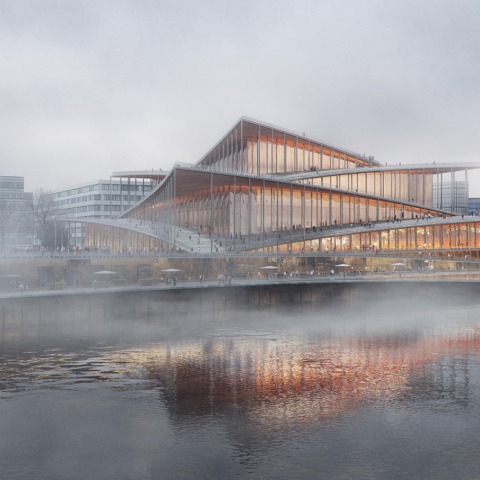 Bjarke Ingels Group designed the complex program of the Philharmonic housing under a series of sculptural roofs that serve as an extension of the public space of the adjacent square and the riverbank on which it lies. The new Philarmonic, with its openness and accessibility, is to encourage the public’s engagement with the cultural life of Prague and become a new lively landmark. As such, it should also act as a strong development accelerator for one of Prague’s most important brownfield areas.