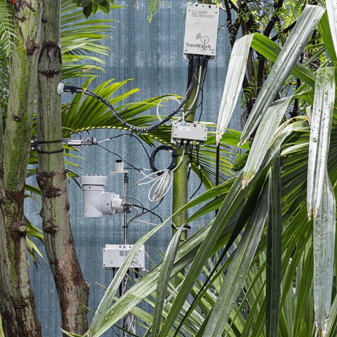 In nature, the desired climate for humans is most closely approximated in the subtropics, characterized by warm summers, mild winters and an almost constant temperature. Based on plants from this climate zone, Building Biospheres envisions a future where buildings evolve into dynamic biospheres. Plant behaviour is monitored with precision and the harvested data is used to activate irrigation, lighting and ventilation. This produces a new symbiosis between what the plants need, what the building can handle and what people desire.