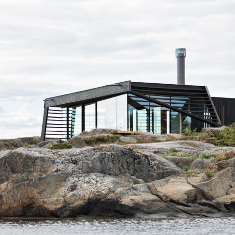 The small house reconstructed by Lund Hagem Architects only 75 sqm is literally lost among variety of small islands. It can only be reached by boat. The building is located on the rocky hill and provides the residents with plenty of opportunities to enjoy the seascape beauty.