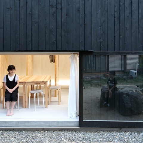 I used 1.55m as the smallest common denominator and the effective dimension for the width of rooms after the numerous simulation of housing lives. Two cubic capacities of 1.55m in width, 13.5m in depth and 8m in height sit next to each other over the T-shaped structure with the joint pillar/beam. Simultaneously feeling the close proximity the small width gives and the sense of sharing the same space even when the dwellers actually are in separate rooms.