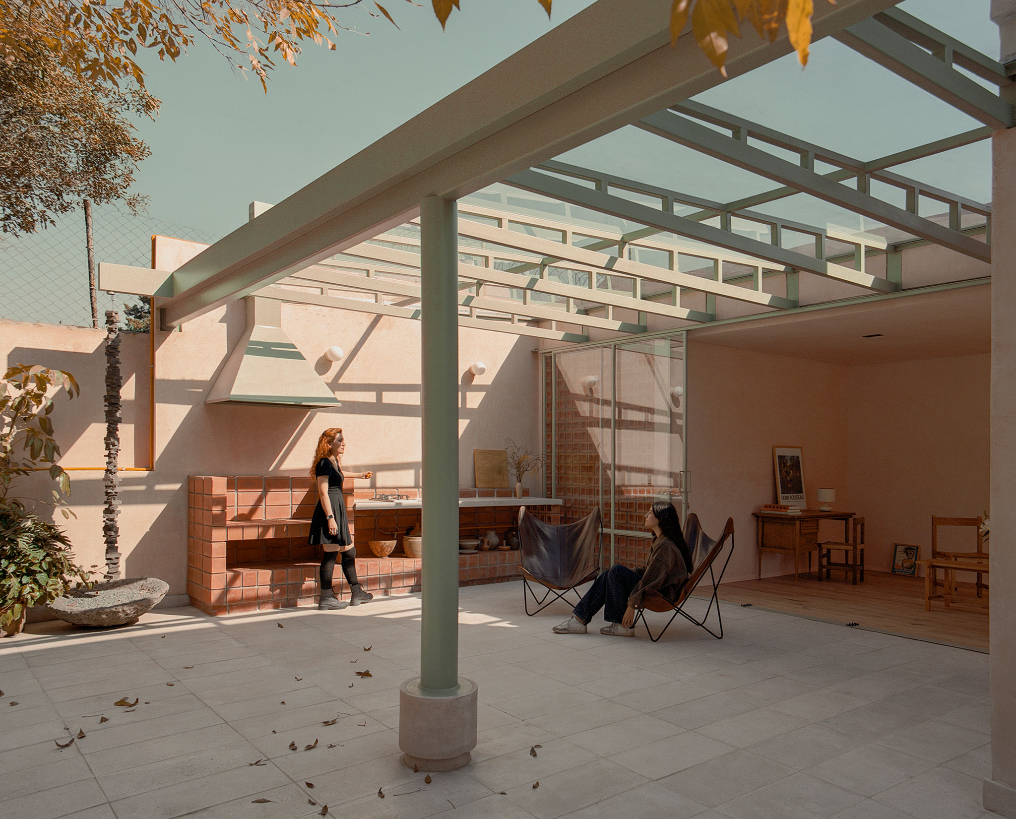 All elements—millwork, ironwork, terrazzo, brick screens, and finishes—were specifically designed for the project and executed on site by Mexican artisans. Beyond aesthetics, this reflects a constructive position: privileging manual processes, durable materials, and local craftsmanship that allow the house to be maintained, adapted, and repaired over time.
