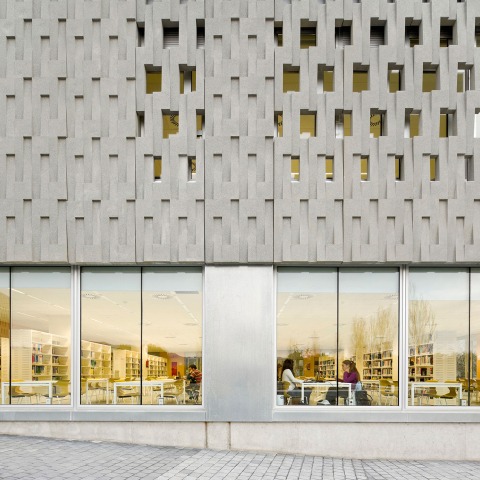 As for the structure, a concrete slab is provided supported by concrete pillars. The perimetral pillars are incorporated into a "thick" façade that incorporates storage space for classrooms and offices. This façade consists of a module type that includes a permanent ventilation, an occasional ventilation sheet and a sheet for maintenance and cleaning. Outwardly a modular covering allows it to be understood as a ventilated facade and to adapt its treatment to each of the orientations and needs of the users. The coating rotates and turns into horizontal or vertical sun protection slats according to the orientations, or disappears in some cases.