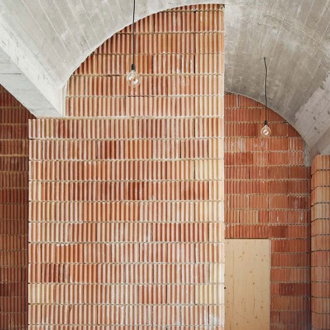 The Archivo Municipal by Aulets Arquitectes, building has been constructed with five materials; concrete, ceramics, wood, iron and lime. These five materials have been worked by five craftsmen.