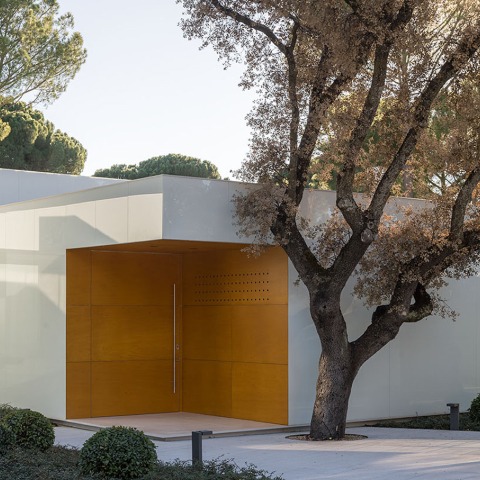 An action to preserve the natural environment is presented here, in which a large single-family home is fragmented, drilled, and rotated to maintain the existing grove of trees. As a result of this operation, the pines and holm oaks enter each of the pieces that make up the house, creating a continuous dialogue between them. The materiality of the house is resolved by means of opaque glass that reflects the trunks of the trees, and whose reflections change over time and the seasons as if it were another living being on the plot.