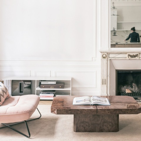 The apartment owner is a young couple that recently moved to Paris from London. Chaptal Residence was renovated in a way to meet their needs - of an active young couple, that loves to host and entertain guests. The layout was organized in a way that preserves their privacy and autonomy while hosting their friends and family. To achieve this, a large storage area was placed between their master bedroom and the other parts of the house, this works as a sensorial buffer zone.