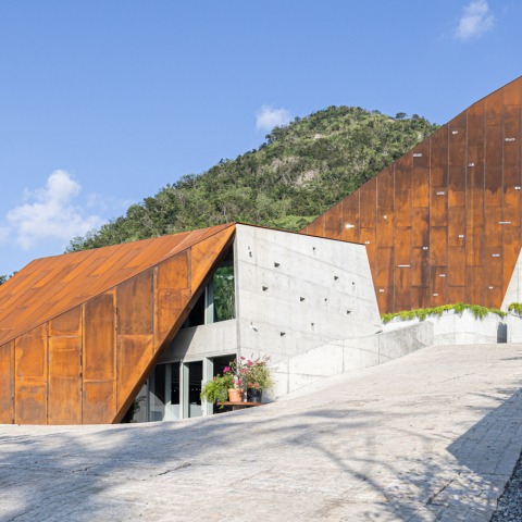 The most distinctive elements of the Paul Chiang Art Center are the two volumes, constructed with a reinforced concrete structure and a corten steel roof, which adapt to the hillside and rise majestically at one end, as if striving to lift themselves up to capture the light.