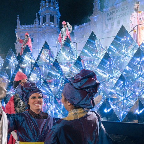 As the sun set on 5th January 2016, Melchior, Caspar and Balthazar travelled the streets of Madrid on constellations of light, to be welcomed by hundreds of thousands of children.