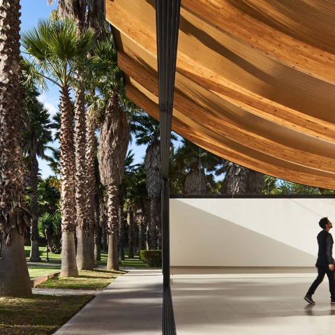 The project conceives the architecture from the activities that are going to be developed, that involves conceiving the space from the interior, not from the outside, not as a distanced object. For this reason, the pre-existing palm trees play an important role in the rhythm of the façade and as an element of the immediate landscape that filters the entry of afternoon sunlight.