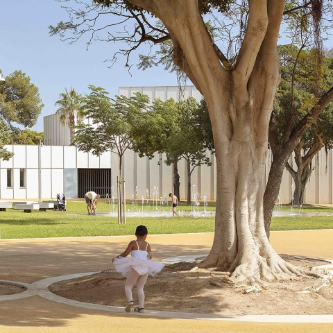 For Almansa Park, which is halfway between a natural park and an urban plaza, EMAC Arquitectura proposes an intervention that restores the existing facilities while retaining the materials for the new ones, creating an integrated complex that blends the different buildings with the park itself and the landscape, thus opening up to the city and its inhabitants, offering them a place to belong.