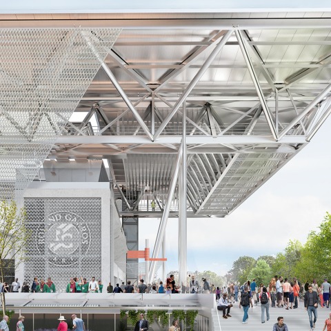 The Roland Garros tournament site is located in the heart of the Ile-de-France metropolis, between dense city and nature, among the Bois de Boulogne, Paris and Boulogne-Billancourt. The new roofing on the Suzanne Lenglen Court aims to fit into this context with precision. It is not only a question of building a retractable roof, but also of proposing a large-scale architectural ensemble whose silhouette interact with the existing building as well as with its surrounding environment.