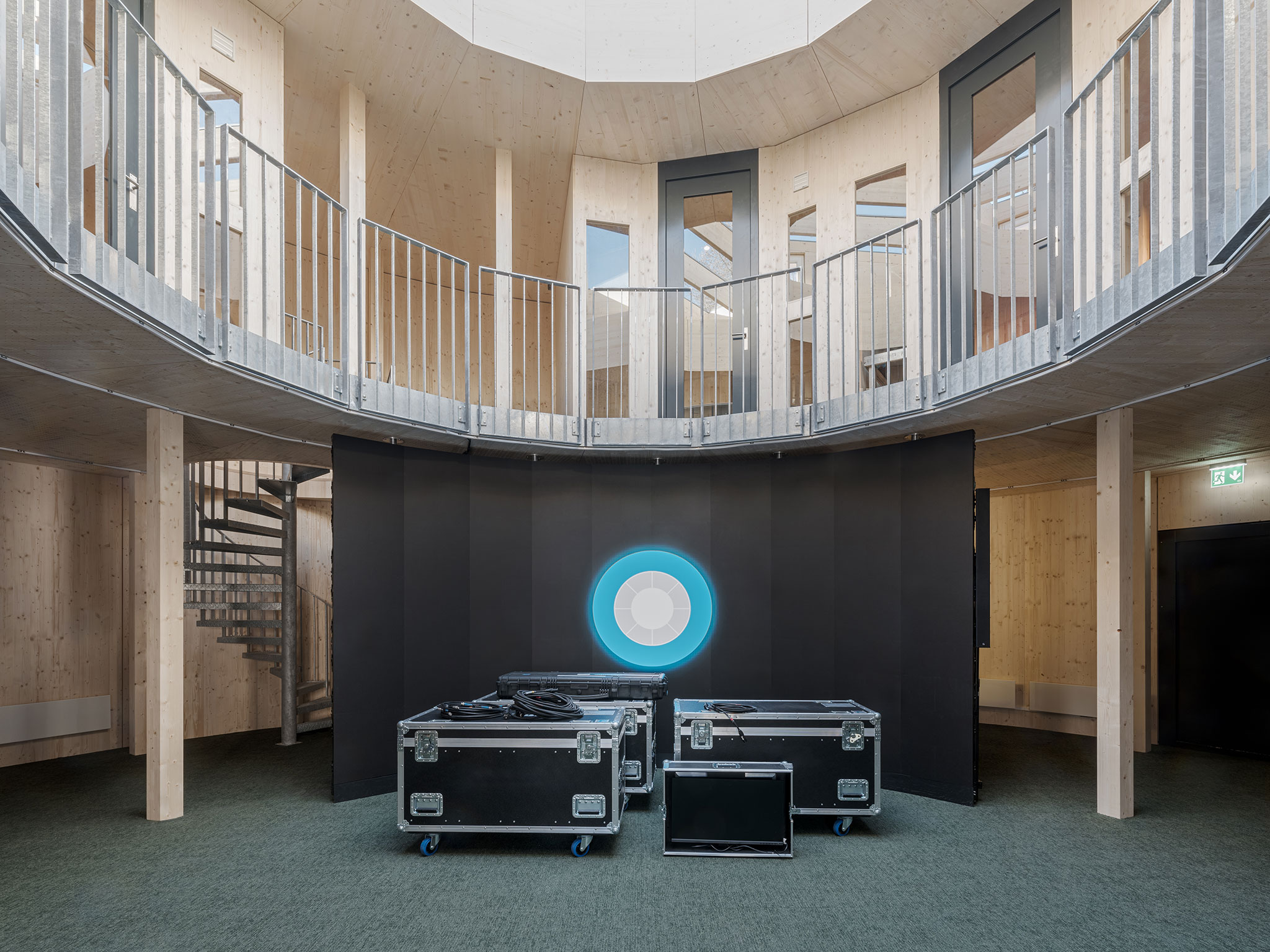 Constructed from locally sourced Swiss timber, the 180 m² pavilion is fully insulated, naturally ventilated, and designed for minimal environmental impact. Its untreated wooden shingles weather naturally, developing a living patina, while its screw pile foundation system ensures complete reversibility, leaving no trace on the terrain after disassembly. The ICON also features integrated technologies for high-speed electric vehicle charging, edge data computing, and community-oriented infrastructure, all wrapped in a design guided by biophilic principles.