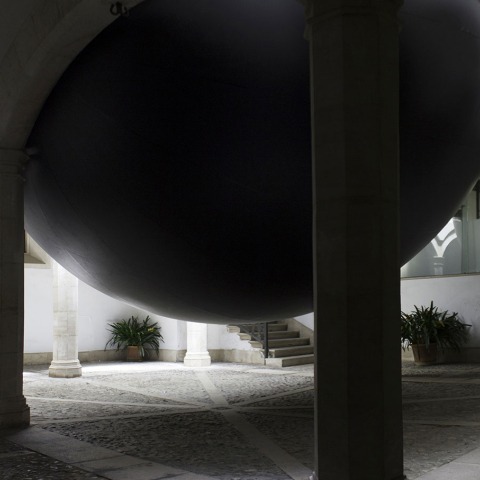 Located in the Can Bordils building courtyard, it questions its very nature. Conceived as a source of natural lighting and ventilation, a huge black sphere suspended in it blocks the entry of light, eclipsing it.