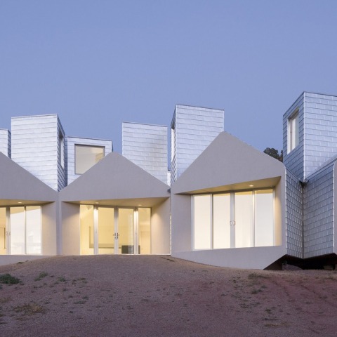 Using simple sustainable building practices to increase environmental performance, everything is stripped down to basic components. The organization of the house is based on an expansive geometric system of growth, radiating and aggregating outward, one module after another. A decentralized field of solar chimney volumes replaces the tradi-tional solid mass of the domestic hearth.