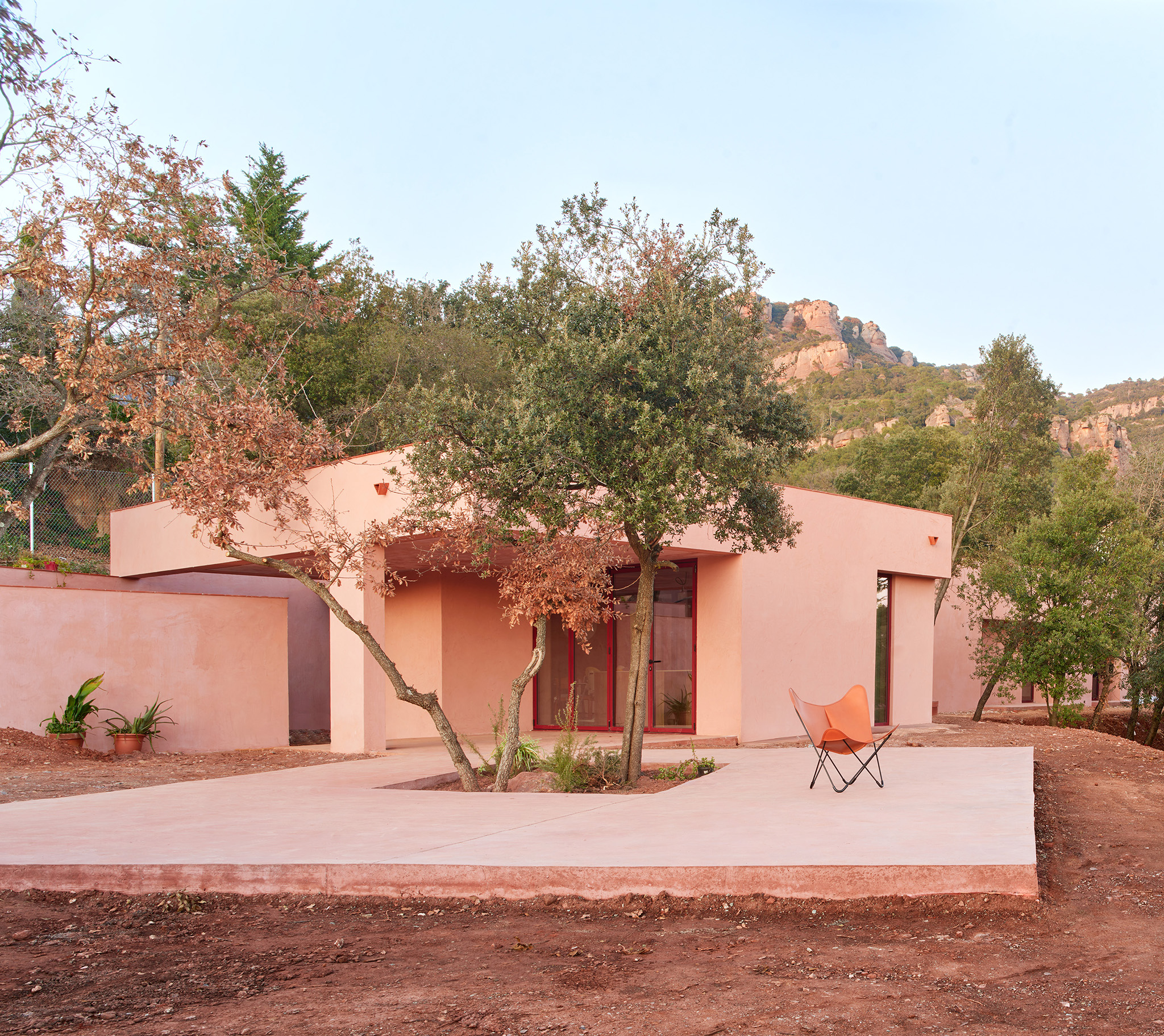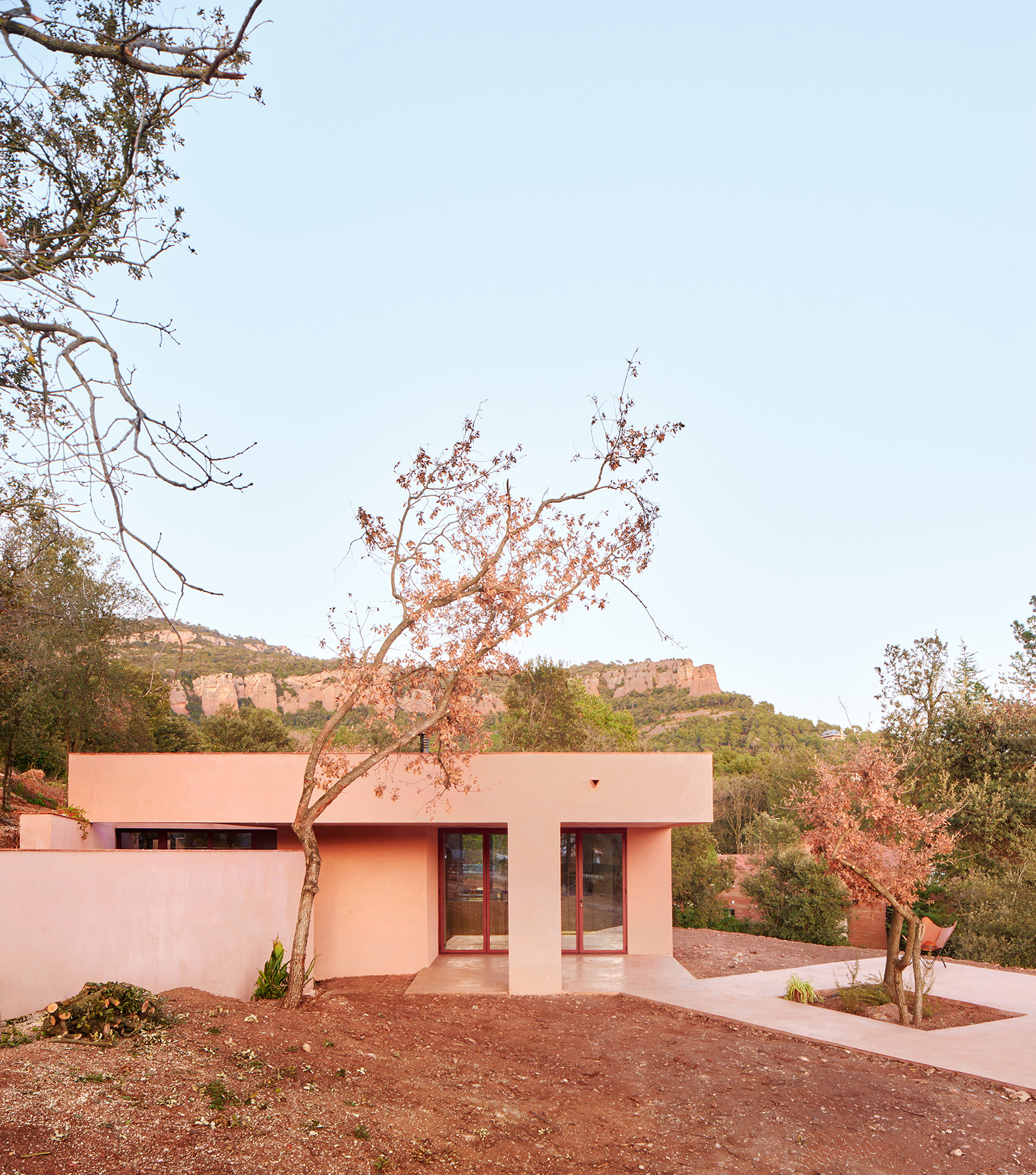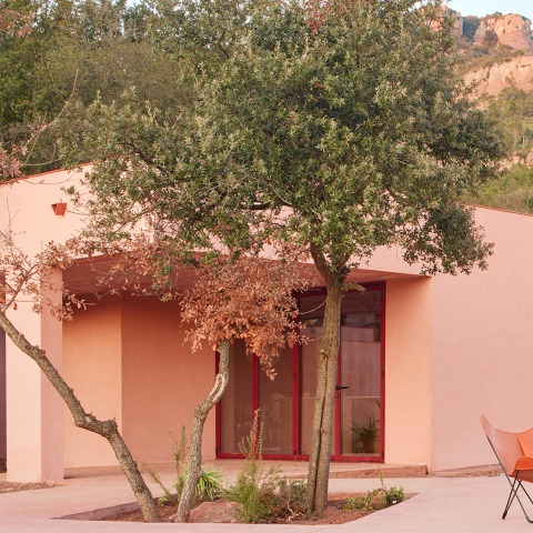 Barcelona-based architecture studio Twobo, formed by María Pancorbo, Alberto Twose and Pablo Twose, presents Casa Sota la Mola. Situated in Matadepera, at the foot of the Sant Llorenç del Munt i l’Obac Natural Park in Barcelona, the project is rooted in a careful reading of its surroundings and designed to blend unobtrusively with the characteristic red hues of the landscape. The result is a monochromatic home that merges with the terrain, combining family life with the tranquillity of nature.