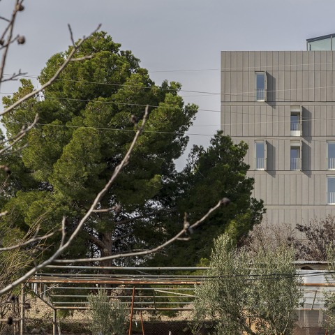 FRPO Rodríguez & Oriol designed the building on a plot on the outskirts of the city's established urban fabric, facing an attractive riverside agricultural landscape, with which it attempts to intertwine in tones and reflections. The architects create an interesting dialogue between the horizon and the "watchtower" nature of the project's volume.