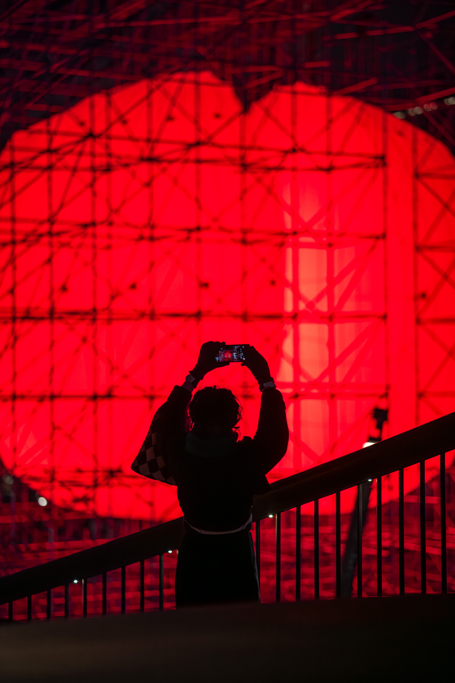 The installation acts as an active agent within the space, capable of altering the perception of its surroundings and establishing an immediate, physical relationship with the viewer’s body. Its monumental scale imposes a presence that is experienced before it is fully understood, generating a sense of awe and attraction that intensifies as the public approaches.