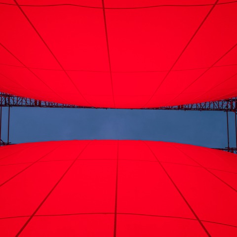 The red light—recurrent in SpY’s recent work—acts as an emotional and enveloping element, transforming the space into a suspended atmosphere. The work does not merely occupy a site; it redefines it, turning it into an immersive experience in which perception, scale, and the body become the fundamental materials of the proposal.