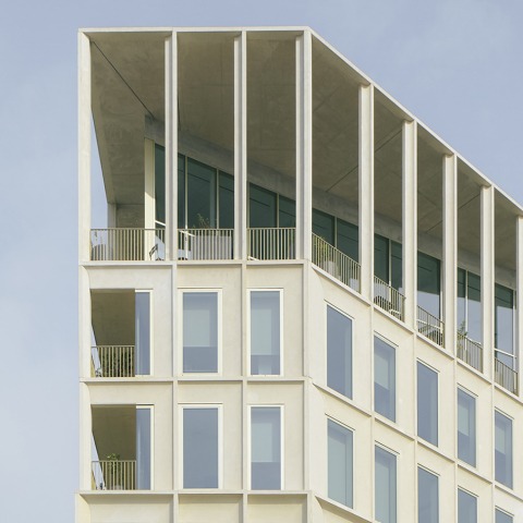 A grid structure organises the facades and creates visual cohesion. The window openings expandas they rise, framing the spectacular views. The facades are made with sand-coloured pigmented concrete, echoing the spirit of Bordeaux's historic stone architecture.